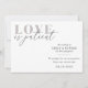 Custom-designed wedding postponement/change the date announcement card featuring "love is patient" classic modern style typography design.