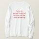 I love this shirt. I had written to the artist asking her if this picture was available on a shirt, and she wrote me back telling me where I could find the shirt. These shirts can be custom made to have a different saying. I loved this saying and went with it. The artist wrote me back later to tell me that she had seen my order go through. How's that for service? Pretty special. It's just as displayed. Perfect!