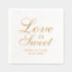 Elegant custom foil wedding napkins feature a "Love is Sweet" quote in script with custom monogram design that can be personalized with the bride and groom's names and wedding date.