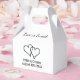 Love is sweet double heart wedding logo custom Favor Boxes. Cute two hearts one love design with names of bride and groom plus date of marriage. Romantic interlocking love icons with fun tagline. Great for desserts, treats, cake, sweets, cookies, cupcakes, donuts etc. Add your own quote or slogan optionally.