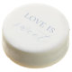 Chic and elegant dusty blue chocolate covered Oreo wedding or event favor, featuring customizable words 'Love Is sweet', against a white background.