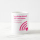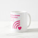 This white mug features the text "Love is the ultimate WiFi connection: it knows no boundaries" in a pink font. Below the text, there is a graphic of a WiFi signal icon with a heart shape at the bottom right of the signal lines. The design cleverly uses a modern metaphor to describe love, comparing it to a WiFi connection that transcends boundaries. It's a perfect gift for anyone who loves technology and romance.