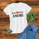 Love Italian Simple Modern Typography Heart Women's Fashion T-Shirt Top features the text "Amore" in a simple black script typography accented with colorful stripes and a romantic red love heart. Perfect as a gift for her for Valentine's Day, birthday, Christmas, Mother's Day, best friends, sisters and more. Designed by Evco Studio www.zazzle.com/store/evcostudio