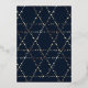 Elegant Hanukkah photo card featuring an elegant typography design "Love Joy Light" in gold wrapped around an arch photo frame. Sparkling rose gold foil stars create the star of David. The reverse side features an elegant starry twinkling star of David pattern. Artwork by Moodthology Papery.