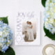 Celebrate the Festival of Lights with our Love Joy Light Star of David Happy Hanukkah Photo Letterpress Photo Cards. This elegant design features the words Love, Joy, Light in faux gold typography, gracefully wrapped around an arch-style photo frame. Sparkling gold stars form a subtle Star of David, adding a meaningful touch to the modern, refined layout. Original artwork and design by © Moodthology Papery.