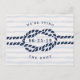 Announce your wedding to family and friends with these coastal chic save the date postcards in classic navy blue and crisp white. Design features a knotted rope illustration with your wedding date in the center and "we're tying the knot" curved over the top and bottom. Postcards reverse to reveal additional your wedding details, return address, and space for hand-addressing. Coordinating items from our Knotted collection available in our shop.