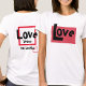 Black and red "Love knows no bounds" T-shirt boldly features the word Love in bold black text that extends outside the box of red. On the back, "Love Knows No Bounds" escapes the confines of the red edges of a box along with a red heart. In any available style for men, women, children, babies or infants, this is a bold declaration of unconditional love.