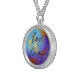 I chose gold plated so that the metal would not react with my skin oils and perspiration. But, I changed the necklace from the gold plated one to a sterling silver. My skin cells will tarnish the silver. But it will not look as bad if some portion of the gold plated necklace somehow became compromised. Zazzle did a find job turning the picture into a pendant for me. As you can see, the colors and the printing of the final product, match the preview. The picture I took is not very clear. But I am pleased with the product I received.