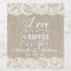 This rustic, elegant wine bottle label features a burlap look background bordered in delicate lace look. Customize with your names and wedding date.