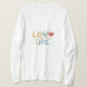 Write a short description of the t-shirt design for the image of "Love, Laughter, Life."