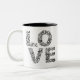 The repetition of the small letters within the larger letters emphasizes the word and adds emphasis to the overall message of love.