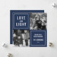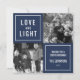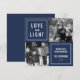 Show off your square photos in this simple, modern Hanukkah photo card. Design features a four square layout with a navy blue background and "Love and Light" in modern white block lettering. Use the two customizable text fields to add a custom greeting and your family name.