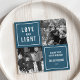 Show off your square photos in this simple, modern Hanukkah photo card. Design features a four square layout with a blue background and "Love and Light" in modern white block lettering. Use the two customizable text fields to add a custom greeting and your family name.