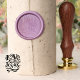 Before the wax hardens, gently and evenly press the wax seal stamp into the melted wax, ensuring it's centered.