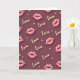 This design shows a repeating pattern of glossy pink lips scattered across a deep plum background. The lips have a soft shine and a gentle curve, and they face different directions so the layout feels lively. Between the lips, the word “Love” appears many times in a creamy golden-yellow color. The lettering looks like smooth cursive writing, and it sits in the open spaces to balance the pattern. Small asterisk-like star shapes are sprinkled around, adding a light sparkle without taking over. Subtle shadows under the lips and words make them look slightly raised from the surface. It feels like a simple, sweet way to say “I’m thinking of you,” whether it’s for a partner or a close friend 🥰❤️. Hope it helps you share your Valentine’s Day feelings in a kind, easy way.