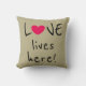 Love lives here Cute Quote Throw Pillow