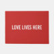 Welcome guest and yourself with this uplifting red door mat. Customize the background colors for a unique look that fits your style and house decor.