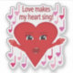 Discover a fun and vibrant design featuring a singing heart surrounded by musical notes, each adorned with hearts instead of traditional ovals. At the top, the inspiring phrase 'Love makes my heart sing!' captures the essence of music and love in one harmonious piece. Perfect for music lovers, romantic souls, and anyone who believes in the power of love to lift the spirit. This design blends passion and melody in a visually stunning way, ideal for gifts, home decor, or apparel that celebrates love and music.