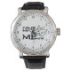 Love MEow text and a drawing of a funny cat with green eyes. Funny wrist watch for anyone.