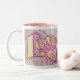 Watercolor painting of the golden yellow word "Love" with a double heart. Pink and purple highlights the letters and heart. A light splah of glitter across the top gives the painting a sparkly glow.