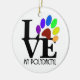 Lightweight, smooth, pure white ornament with nice sheen. Perfect size to be seen from across the room ... and to attract closer inspection! Price was great for ordering enough for the whole family! Clear, bold black design just as requested. Matches the order exactly. Just so nice!