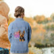 I just got my Sheltie jean jacket and I have to say the size chart was a little big. I had my dog names put on it chose blue. I expected the letters larger which is why I close blue so they would stand out. The size they are I can hardly read them. The jacket is great but I am not happy with it, Thank You MARY.