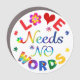 Inspirational Autism quote, Love Needs No Words, with beautiful floral illustrations and Autism puzzle pieces to support Autism children and their families.