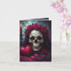 A striking skull sits serenely beneath a velvet hood, its hollow eyes catching the warm, trembling glow of a single candle. A crown of deep red roses crowns the bone. Beside it, a heart-shaped box rests among scattered rose petals, a harmony of romance and ruin. The palette is sumptuous and dramatic: blood-rose magentas and burgundies set against midnight blacks and smoky teal highlights. The design feels alive despite its macabre subject. Candlelight throws long, dancing shadows, turning decay into elegance.