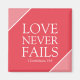 Love Never Fails 1 Corinthians 13:8 Scripture magnet | Encouraging biblical passage | Beautiful Christian friendship gift | Gift for witnesses | Trendy pink hues with white font | JW Gift | Feminine stylish bible passage gift
