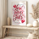 Inspire love and devotion with this beautiful typographic art print featuring the timeless verse from 1 Corinthians 13:8. The elegant calligraphy, adorned with delicate watercolor hearts and flourishes, creates a heartwarming and romantic design. Perfect for adding a touch of love and faith to your home décor, wedding décor, or as a thoughtful gift for a loved one.