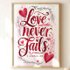 Love Never Fails: 1 Corinthians 13:8 Poster