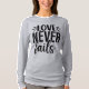 Women’s t-shirt with the quote “Love Never Fails”