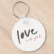 Modern, minimalist “Love New York” inspirational quote keyring in a stylish off black with dusky blush pink accent in a hand painted style typography with Scandinavian minimalism style and inspired by travel and the love of New York City in the USA.