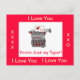 Says You're just my Type. Full of color , kisses n hugs. Charming typewriter is whimsy and like a cartoon vintage one.