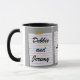 Cute custom mug with "Name and Name Love Grandma Name xoxo" on three lined paper notes that look like they're taped to the mug. Great for Mother's Day, birthdays, or anytime you want to say you love her. Easily personalize with your own names. Lots of styles of cups are available.