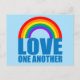 Beautiful inspirational rainbow postcard with the pretty quote LOVE ONE ANOTHER. Remind others to be kind and show each other love and kindness every day with this pretty bible verse quote. A cute LGBT quote for a Christian.