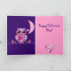 This cute, all around designed Valentine's day card shows a romantic Owl carrying a heart under a pink Moon. The text on the front and inside the card easily can be changed into your personal text. It is also possible to change the inside card background colours.