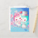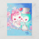 Beautiful, sweet owl art in soft pastel colors. The sky is soft blue. Owl sweethearts sit on a branch with pink spring blossoms on it. The boyfriend owl has a white tophat on his head. The girlfriend owl has a pink bow on her head. The male owl is soft aqua blue. The female owl is soft pink. Between them, the symbol of their sweet love, a pretty red heart.