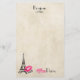 Love Paris with Eiffel Tower on Parchment Texture Stationery