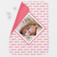 Add a special custom touch to your Valentine's Day gift with this pink love pattern baby blanket. Add a photo for a personalized touch on the front. On the back, add a special message or delete. This baby blanket would also make a great new baby keepsake or gift to new parents.