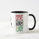 Love, Peace, & Joy - red, black, and green with sparkles, your initial