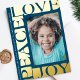 LOVE PEACE JOY one photo modern christmas frame Holiday Card