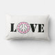 love peace sign with pink hearts typography inspirational peace reversible pillow love is on one side and pink polka dots are on the other side