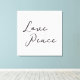 A sleek canvas print showcasing the refined "Love & Peace" script for a sophisticated wall statement.