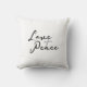 This elegant throw pillow features the words **"Love"** and **"Peace"** in a flowing script, with a subtle cross design integrated into the text. Set against a clean, white background, it brings a sense of calm and faith-inspired charm to any room. Perfect for cozy living spaces, bedrooms, or as a heartfelt gift.