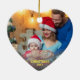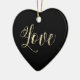 Energetically enhanced Heart shaped ornament with family etc. PHOTO on one side and the word LOVE in elegant modern faux glitter yellow Script text / calligraphy. @ sided Christmas Holiday ornament fir your Christmas tree.