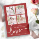 Elegant and stylish, this Valentine's Day card features a photo collage or 4 family photo with a 'love' in a trendy handwritten calligraphy script on a red background. The back of the card includes text for adding a personal message.