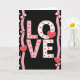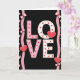 This greeting card centers on the big word “LOVE” set against a deep black background. The letters are large and easy to read, with “L” and “V” in soft pink and “O” and “E” in white. Inside the letters you’ll notice small red hearts, pink dots, and tiny gold specks that add a sweet, cozy feel. Along the left and right edges, two wavy pink ribbons run vertically, each decorated with light pink bows and small red accents. Three larger red hearts stand out too—one tucked inside the “O,” one near the base of the “L,” and one sitting beside the “E,” each outlined with tiny white bead-like dots. The word “LOVE” sits right in the middle of the card, and the lettering looks thick and stylized, with the patterns clearly visible. It feels meaningful to give because it keeps the message simple and direct while still showing a lot of care and affection 🥰❤️.