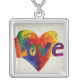 Love Rainbow Glitter Heart Necklace Charm