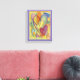 Very impressive product! The canvas is sturdily made. It features a saw tooth hanger on the back, making it easy to "try out" the canvas in several rooms until I found the best location. It attracts good comments from my friends. I love it! The printing is wonderful! Colors are as bright and crisp as they appeared on the website.